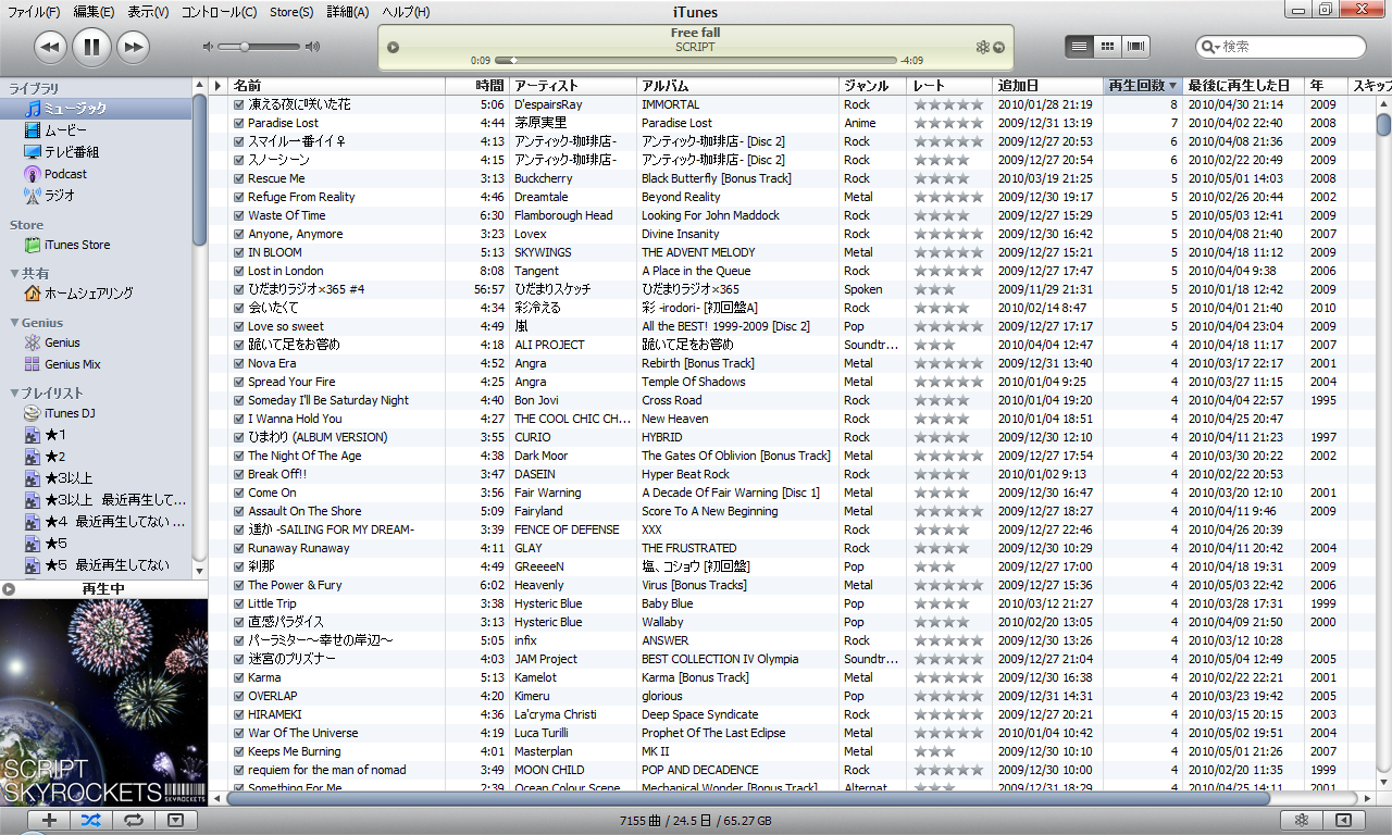 HOME > CD > CD 日記 偏り 2010/05/04 暇すぎて倒れそうだ。やることが見つからないので、また古本屋へ売るべき本やCDを見繕っている。5連休とか集中した休みじゃなくて、週半ばの水曜とかに、ぽっと1日休みがあったりした方がありがたい。 書くこともないので久々にipod、itunesの話でもするけれども、現在7,155曲。今年中に1万曲まで行きたいものだが難しいか。手持ちでまだインポートしてないのはあるけれども、それだけではきつい。 再生回数上位について晒してみるのでご参考まで。 関連 -CD, 日記
